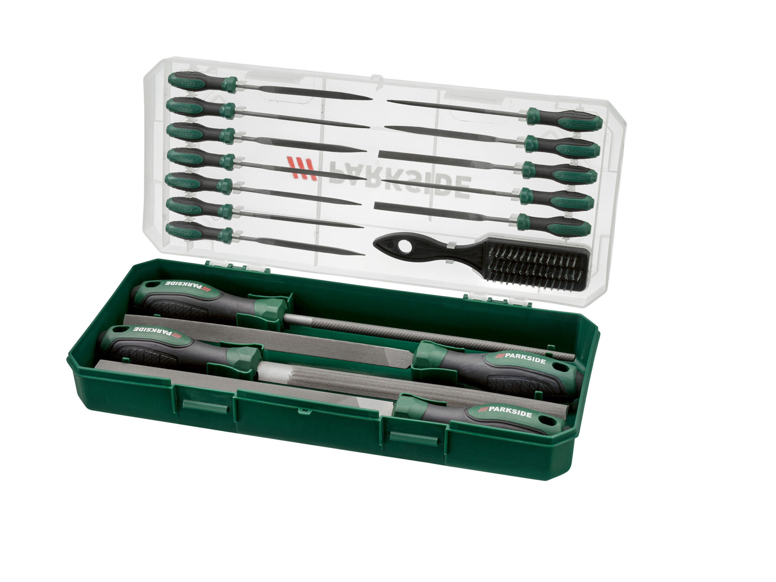 Ensemble complet de 17 limes PARKSIDE pour le travail du métal. Limes d’atelier et limes à clés avec brosse de nettoyage, idéal pour tous vos projets.