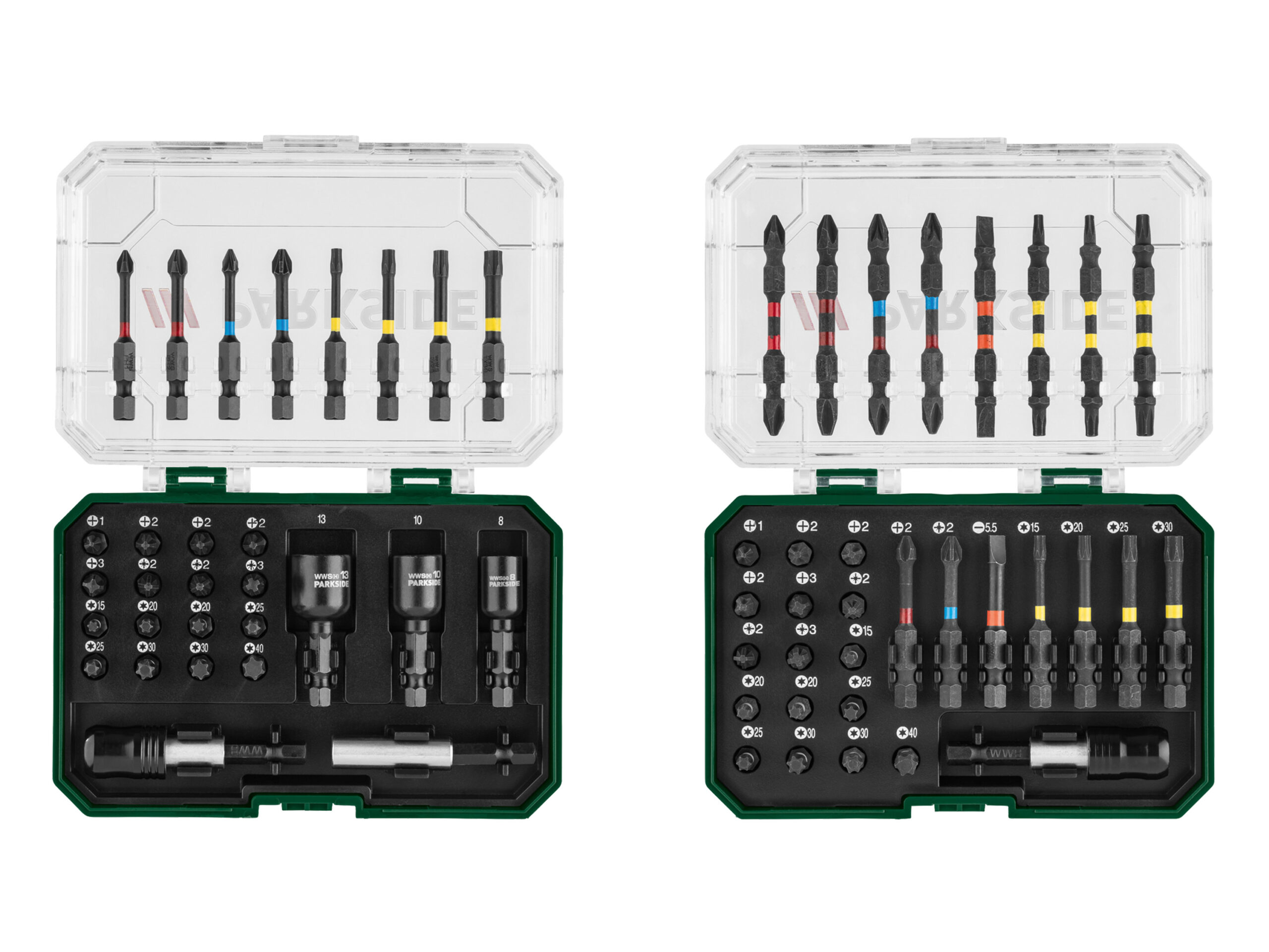Jeu d’embouts Impact PARKSIDE PBSI 2 C3 robuste et durable pour visseuses à chocs. Embouts à code couleur, porte-embout rapide. 32 ou 29 pièces.