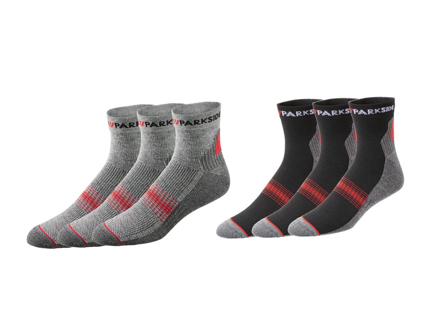 Lot de 3 paires de chaussettes de travail PARKSIDE pour homme. Résistantes grâce aux renforts, confortables avec leur semelle bouclette. Idéales pour le travail!