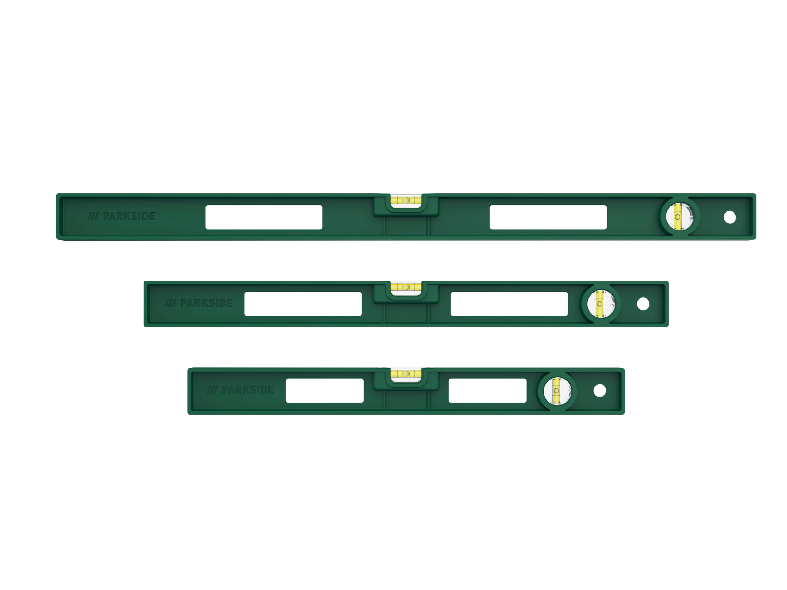 Ensemble de 3 niveaux à bulle PARKSIDE® fabriqués avec des matériaux recyclés. Précision, durabilité et respect de l’environnement pour tous vos travaux.