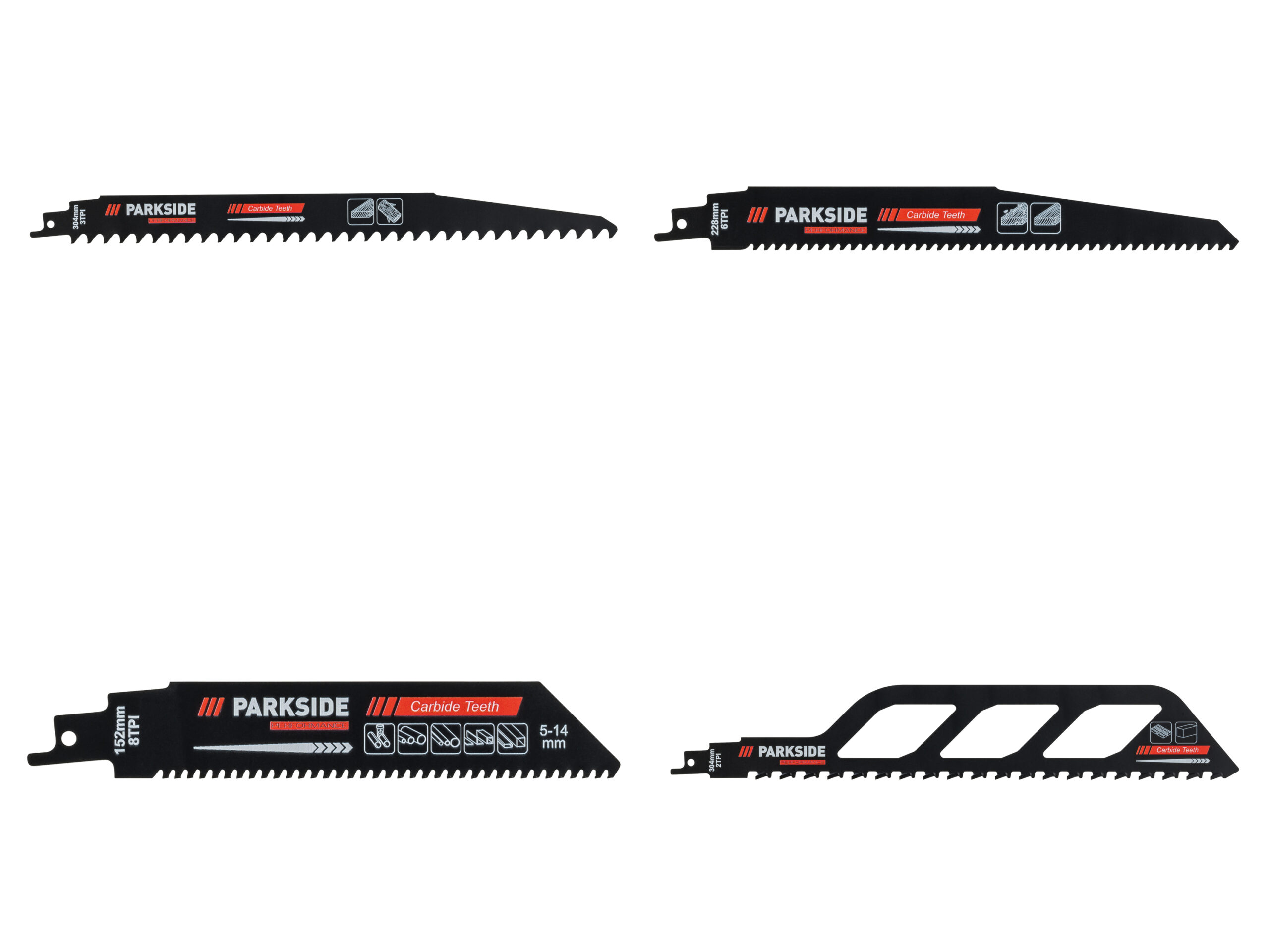 Lames de scie sabre PARKSIDE PERFORMANCE® : Coupes précises et rapides dans bois, métal et matériaux de construction. Durée de vie et vitesse optimisées !