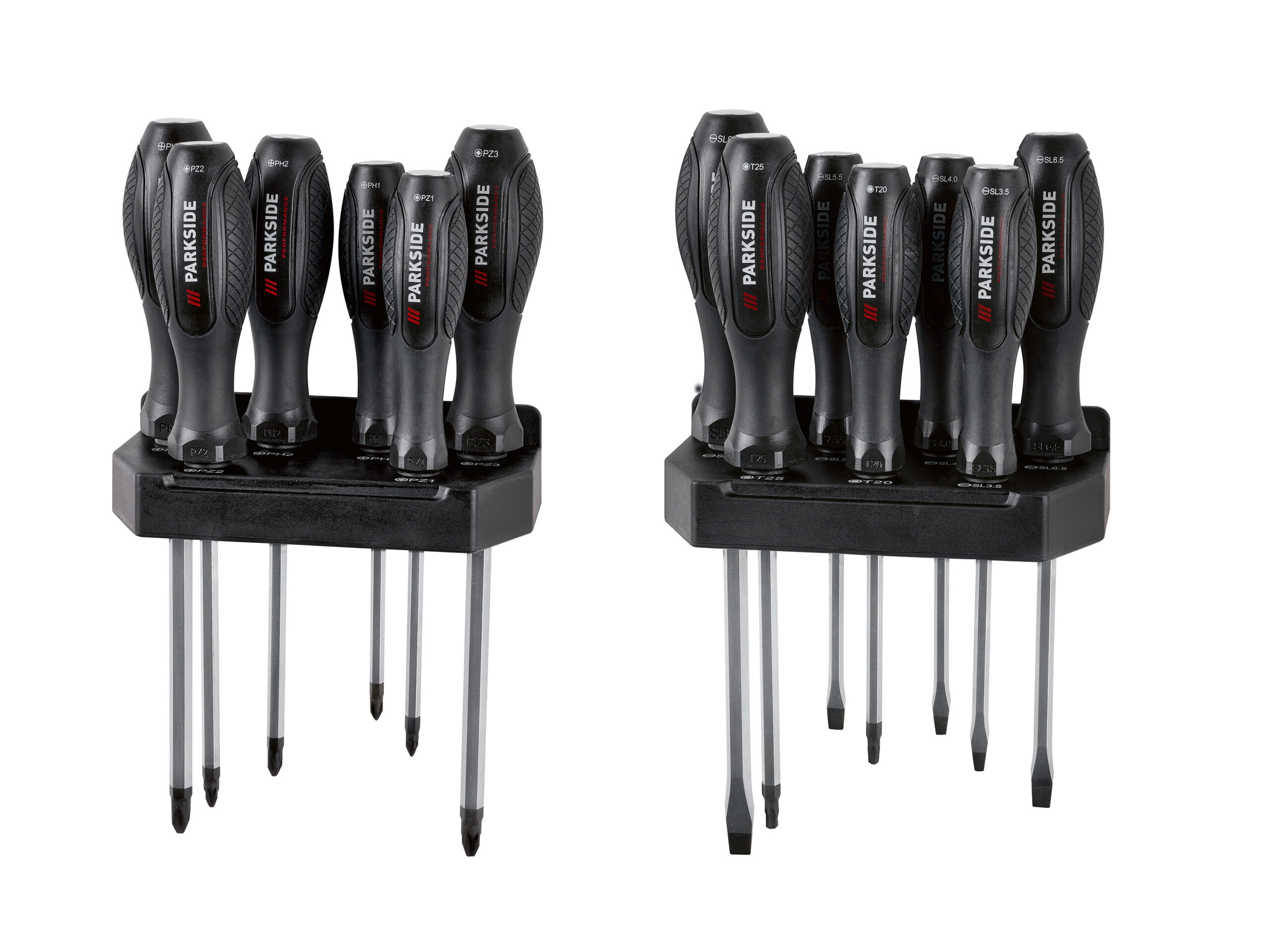 Set de tournevis burin Parkside Performance® 15 pièces : robustesse, précision et confort pour tous vos travaux de vissage et de burinage. Embouts magnétiques.