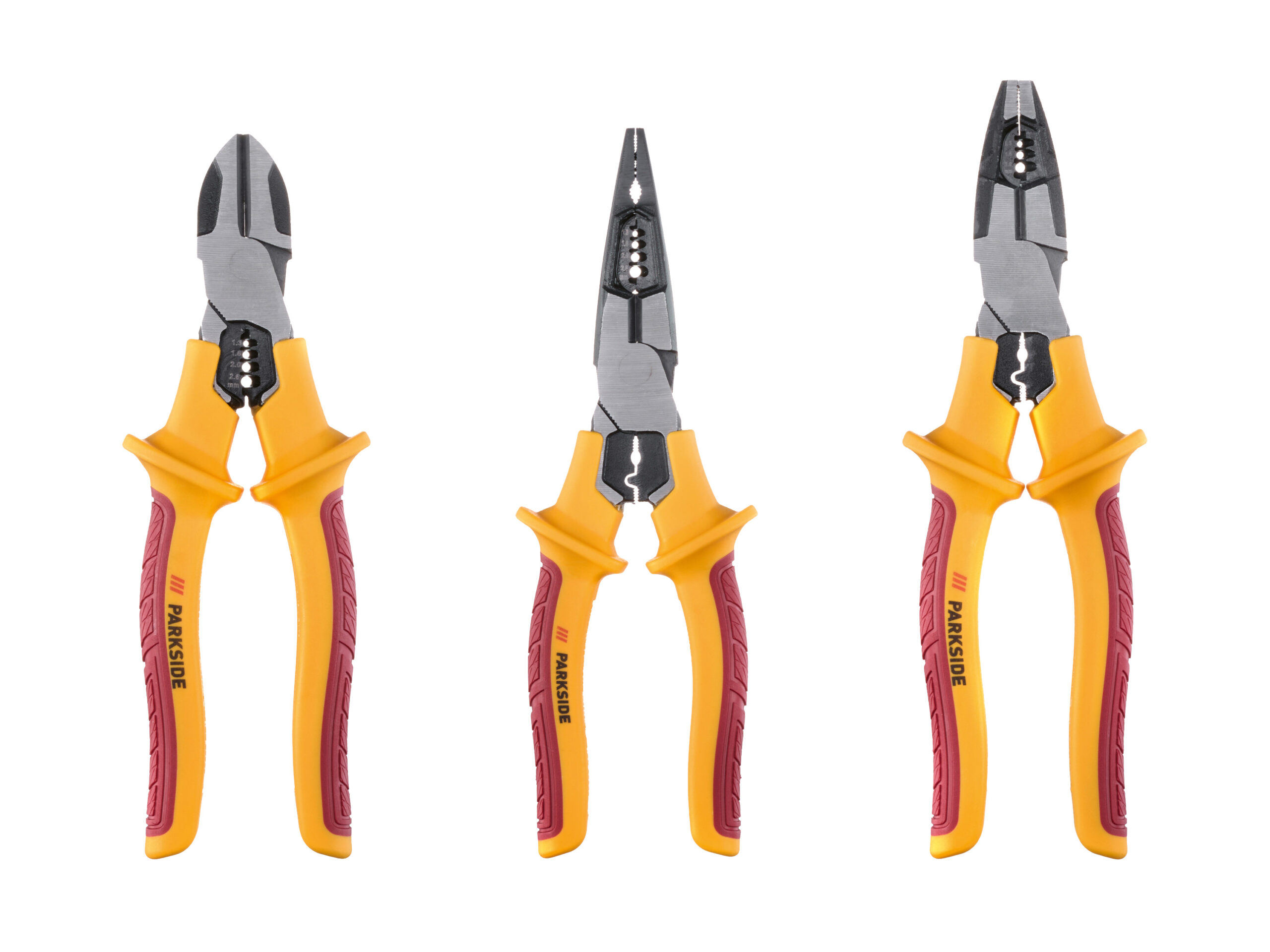 Pince PARKSIDE® : choisissez votre modèle (bec plat, universelle ou coupante). Outil robuste et isolé pour travaux sur fils et câbles jusqu’à 1000V.
