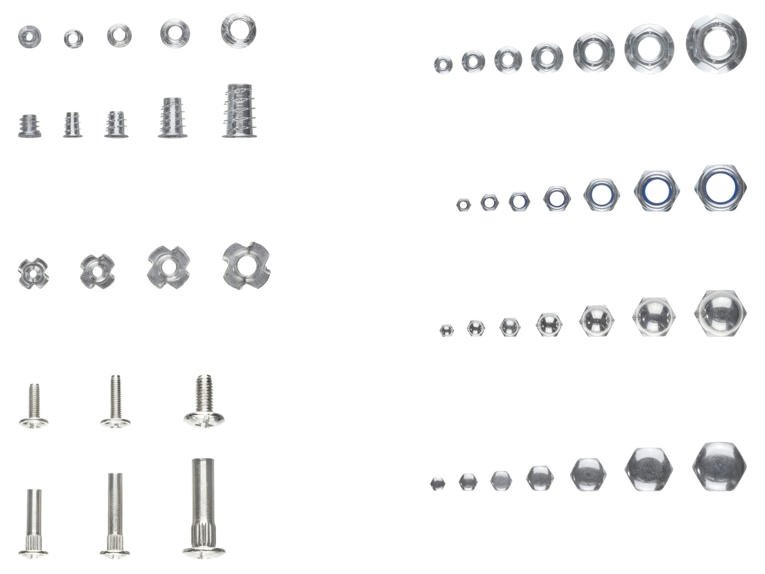 - Assortiment d’écrous à frapper (100 pièces): Idéal pour la fixation de matériaux en bois.