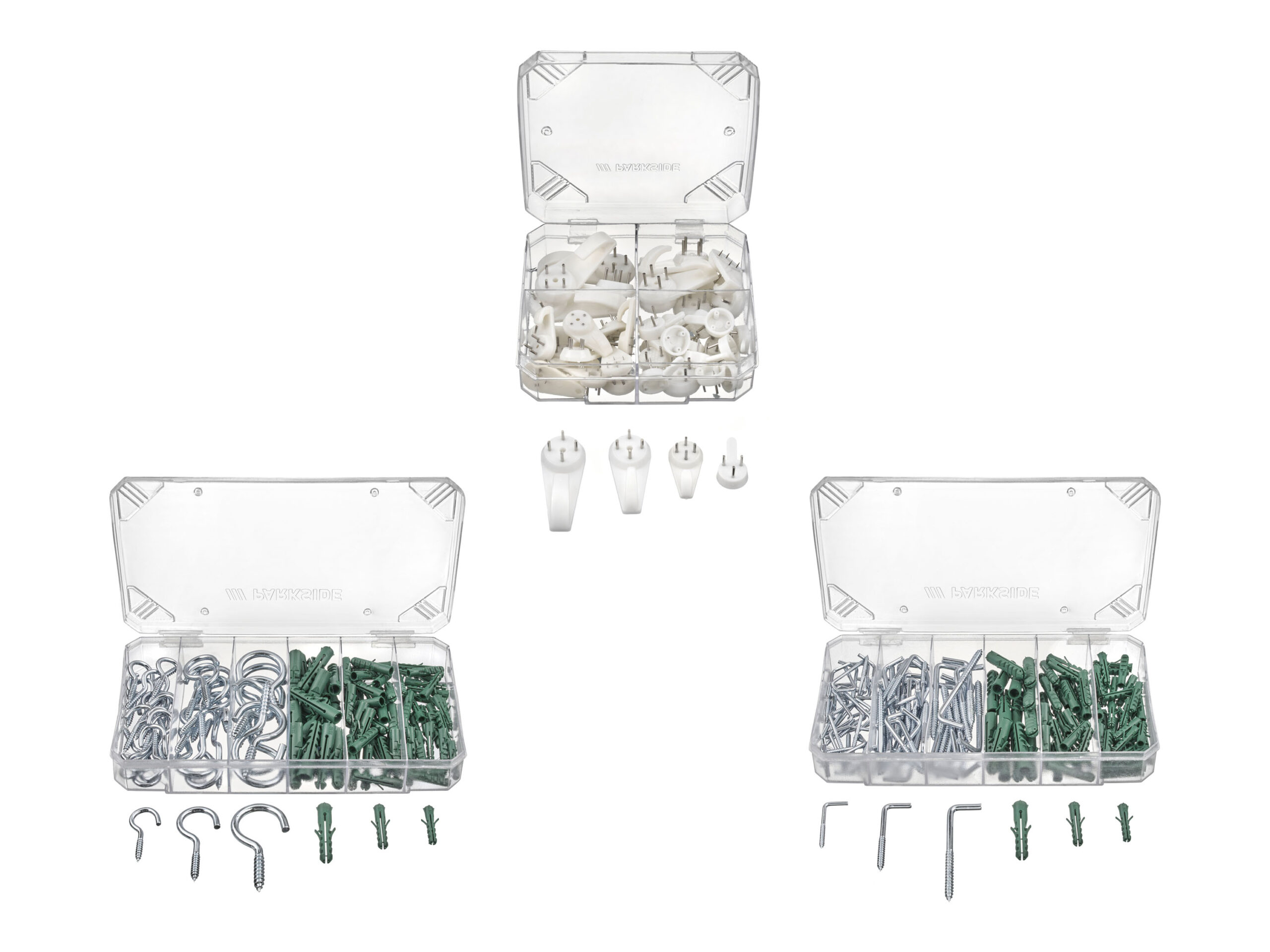 Organisez votre atelier avec le set PARKSIDE® ! Crochets en L, crochets à vis et crochets plastique pour une fixation propre et efficace. Boîte de rangement incluse.