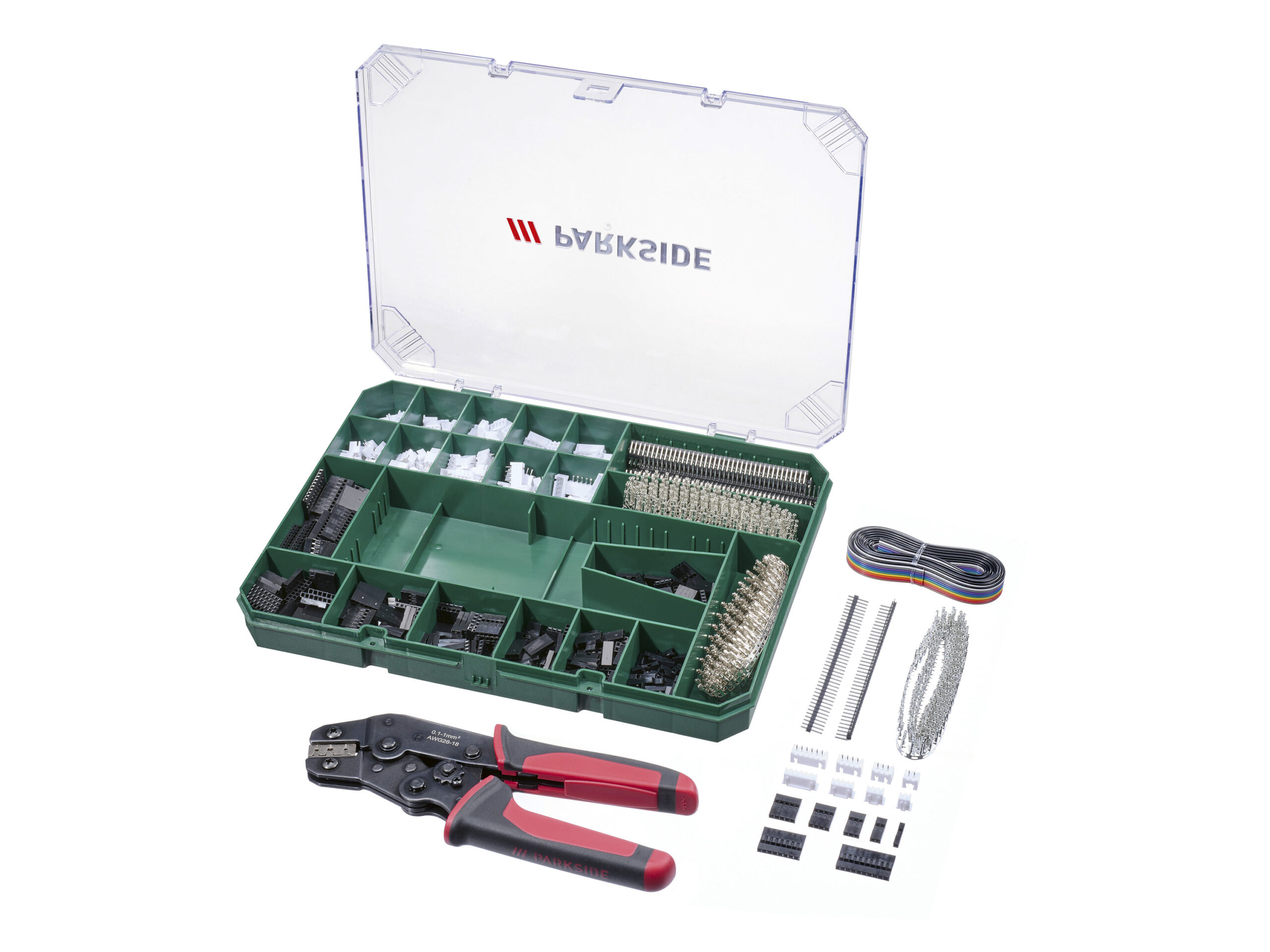 Kit complet de pinces à sertir PARKSIDE avec 2012 pièces pour connecteurs électriques. Sertissage précis et fiable pour tous vos projets.